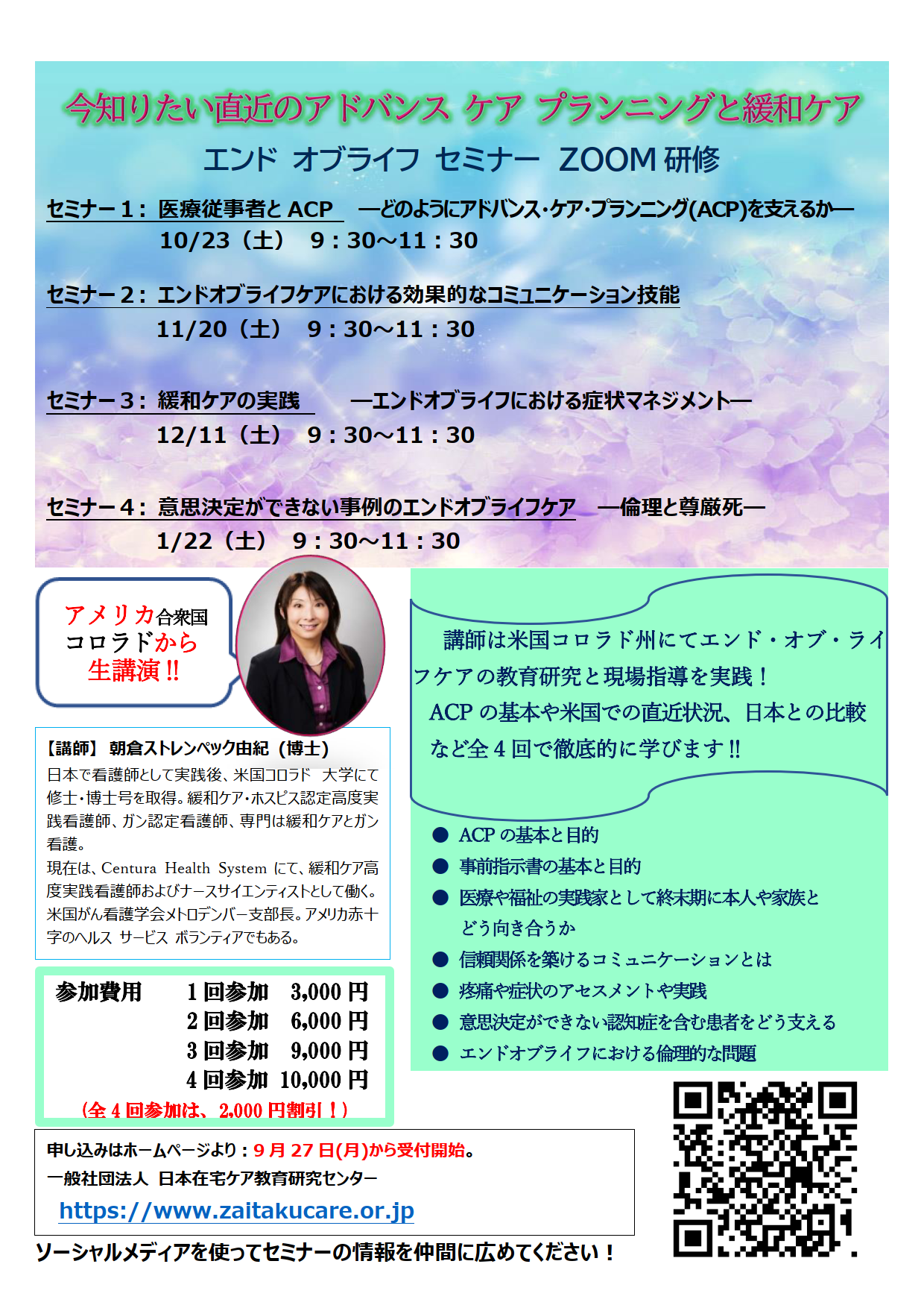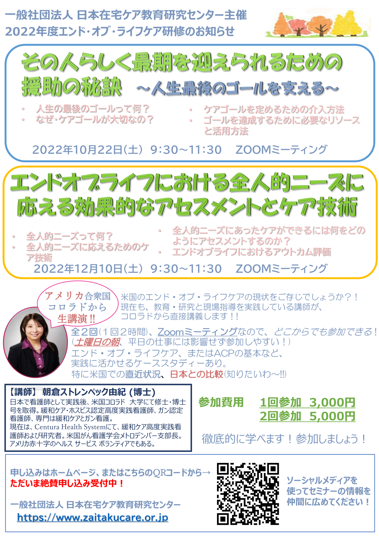 ご案内:ZOOM研修「2022年度エンド・オブ・ライフ・ケアセミナー」